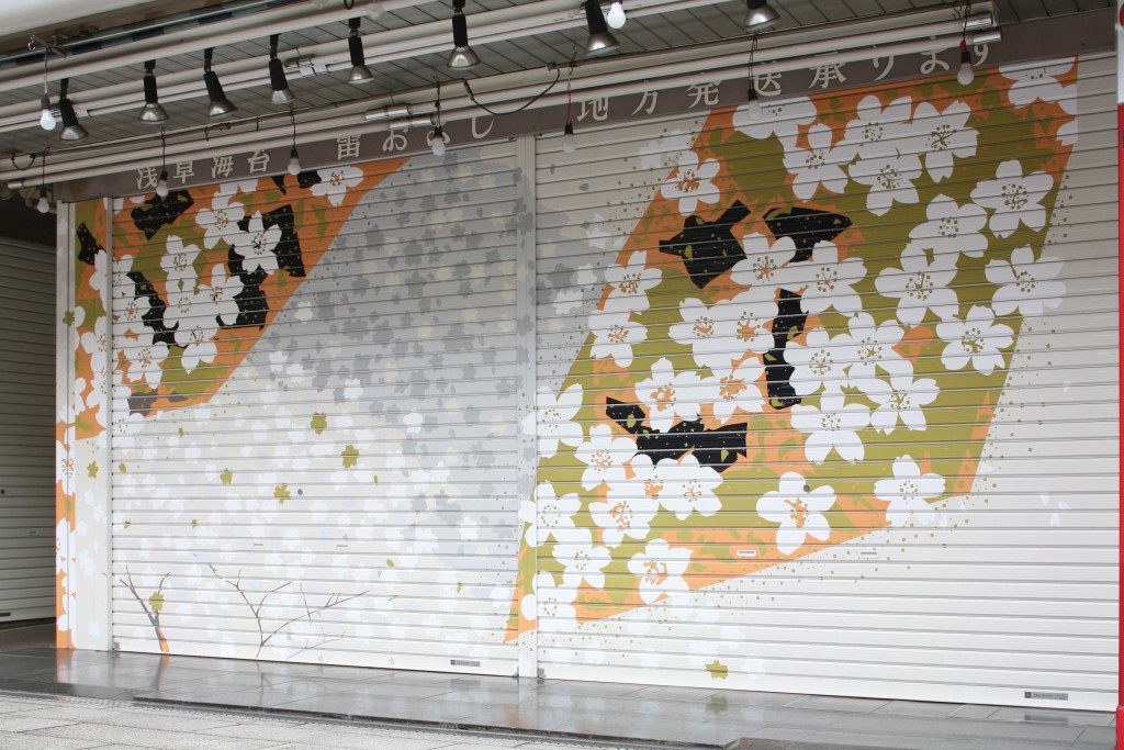 閉店後のシャッターの役割を環境創造の観点から見直し、新しいコミュニケーションの形を創り出そうという狙いに、地元と企業と芸術家の三者が一体となった従来にないユニークな事業。日没から夜11時まで続く浅草寺のライトアップとあいまって、夜の浅草に華やかな彩りを添える“寝姿”を、ぜひ一度ご覧ください。